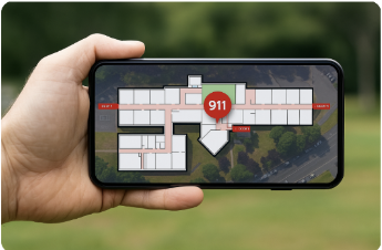 Calls route to the correct PSAP, and responders arrive faster with room-level accuracy across campus, buildings, and beyond.